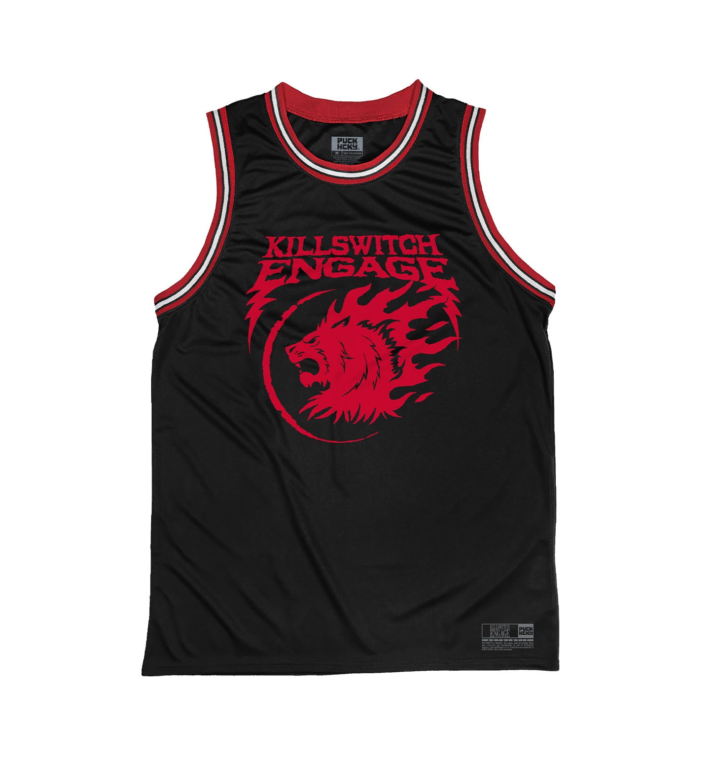 KILLSWITCH ENGAGE 'SKATE BY DESIGN' sleeveless basketball jersey in black, red, and white
