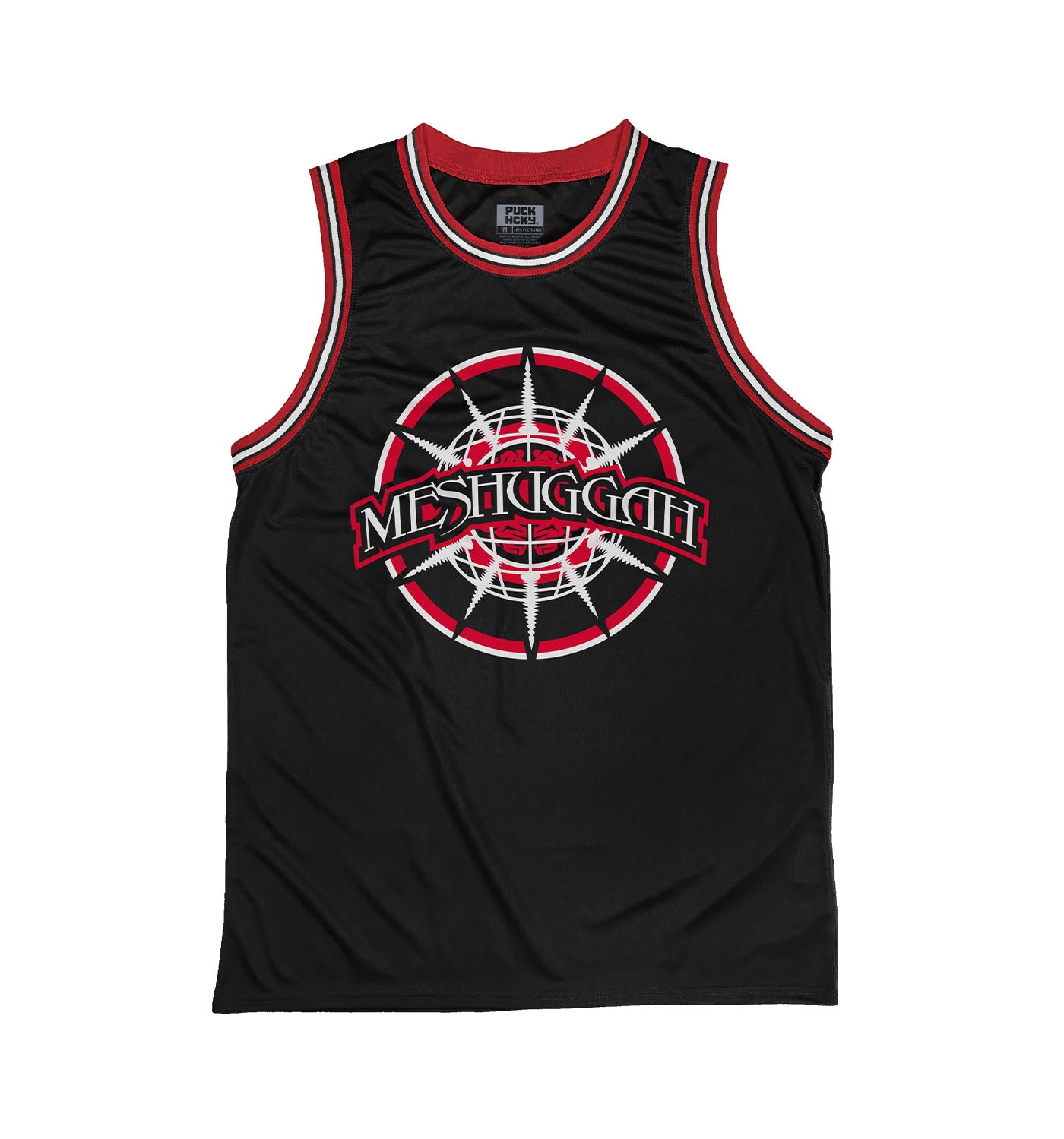 MESHUGGAH 'CHAOSPHERE' sleeveless basketball jersey in black, red, and white