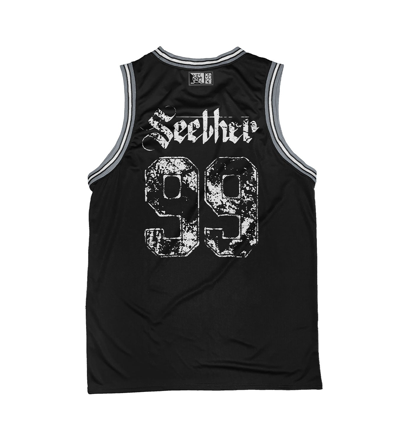 SEETHER 'THE S' sleeveless basketball jersey in black, grey, and white
