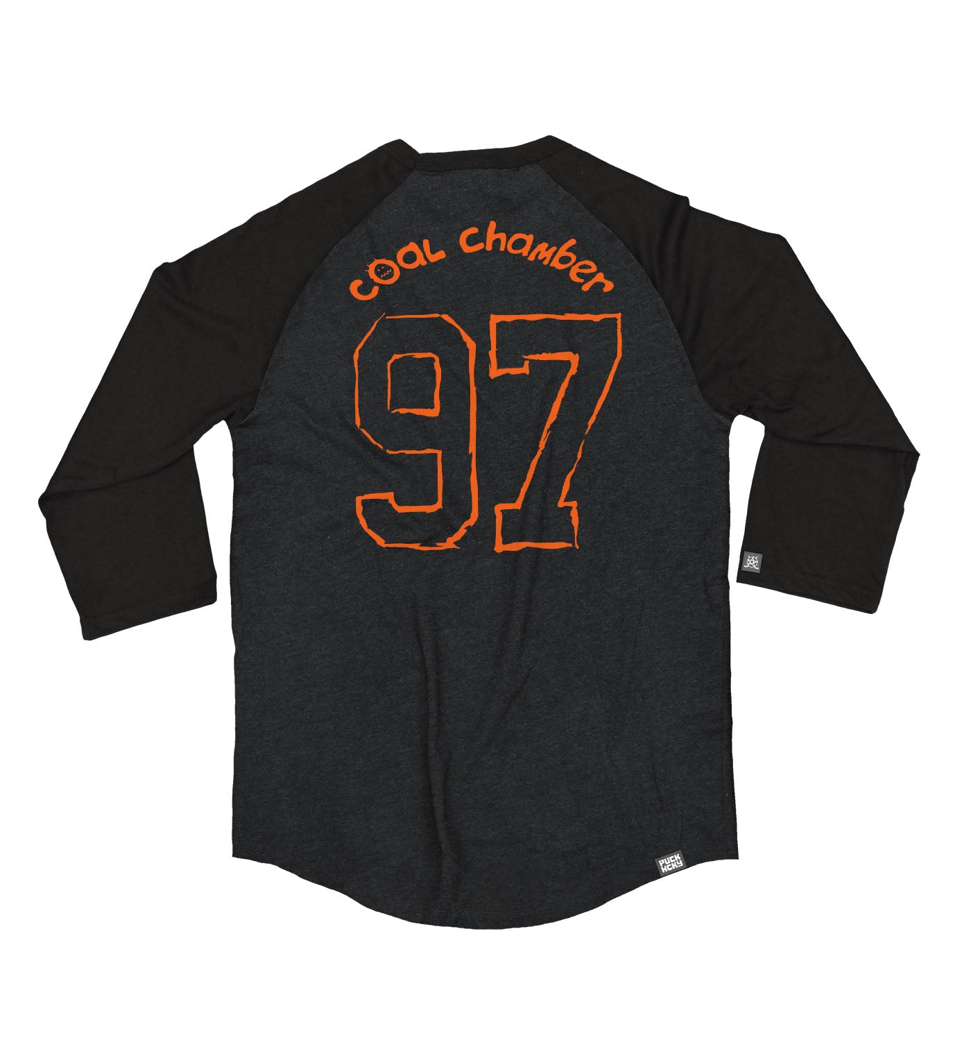 Coal Chamber 'Loco' hockey raglan in graphite heather with black sleeves and orange print