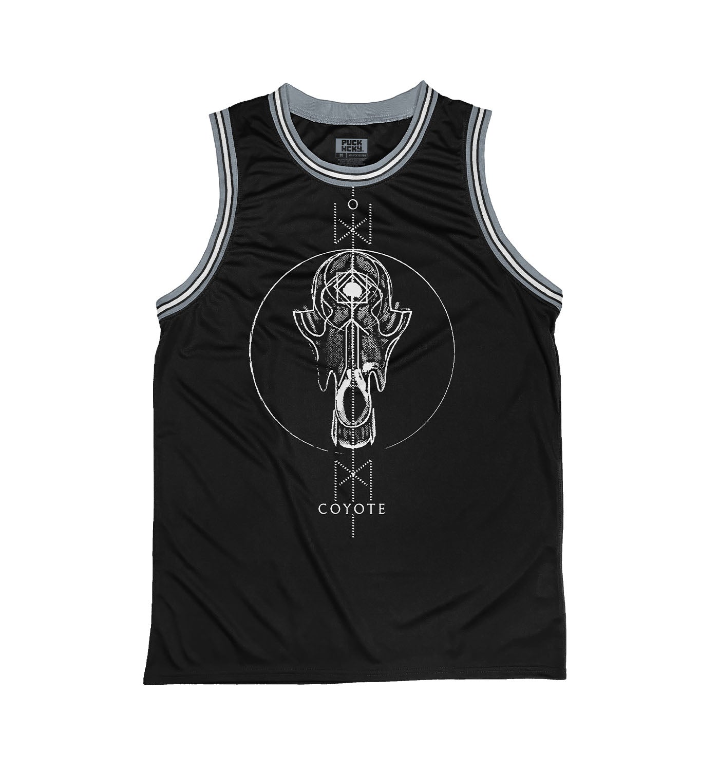 TOTEM 'Coyote' sleeveless basketball jersey in black, grey, and white