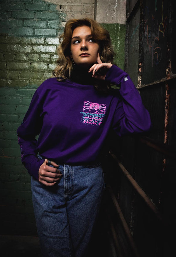 PUCK HCKY 'VAPORWAVE' long sleeve hockey t-shirt in purple