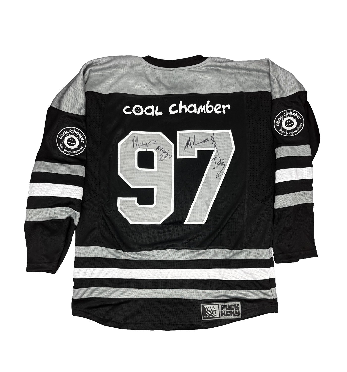 Coal Chamber 'Loco' deluxe hockey jersey in black, grey, and white AUTOGRAPHED