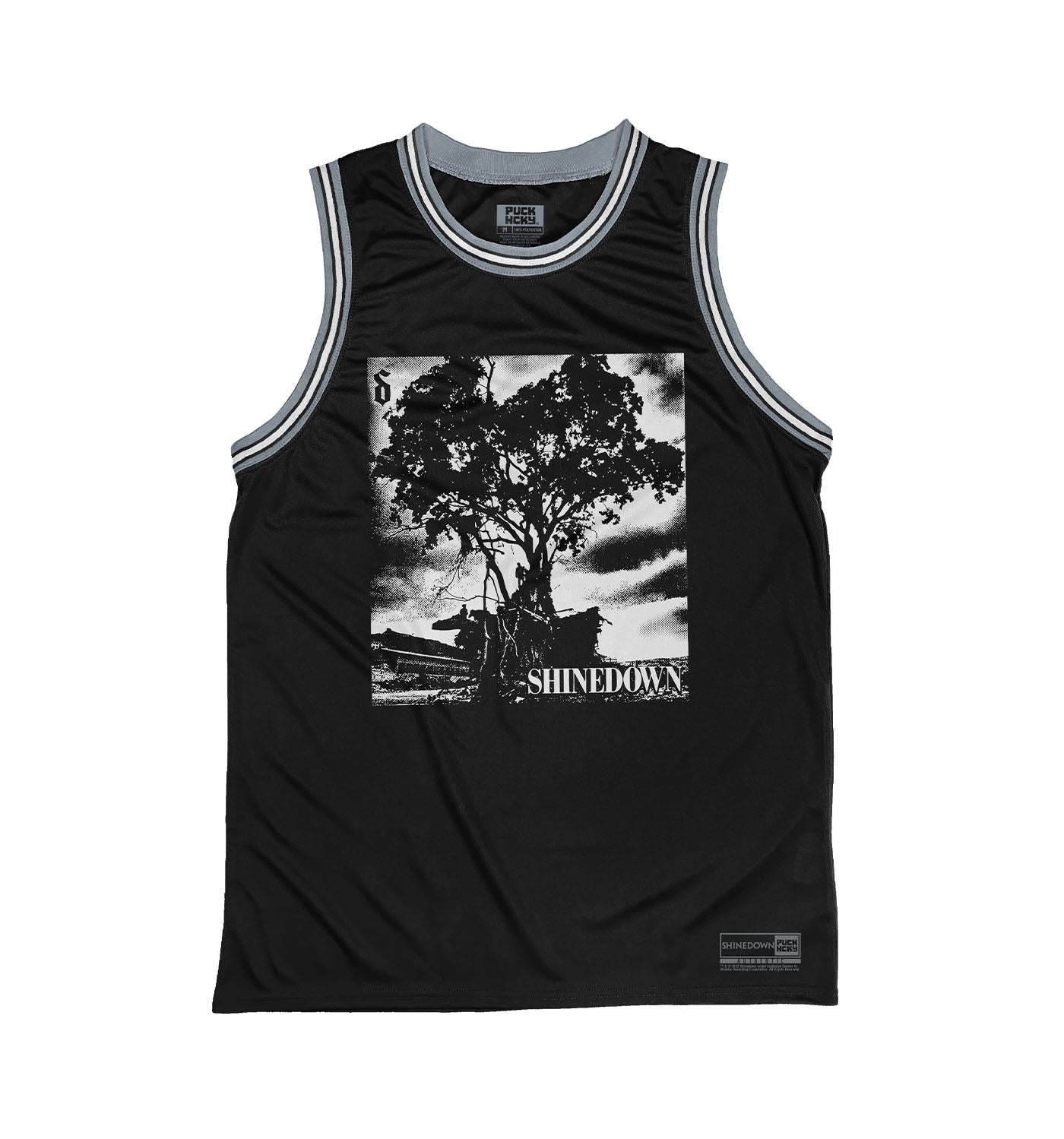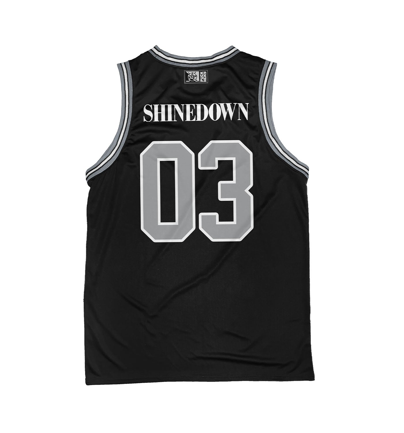 SHINEDOWN 'WHISPER' sleeveless basketball jersey in black, grey, and white